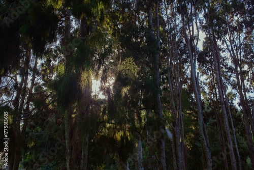 © Karori Production, Obraz premium Path going through trees rustling with wind in summer.