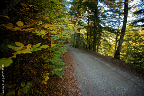 © Roman, Fototapeta premium Path in a beech forest with unfocused background