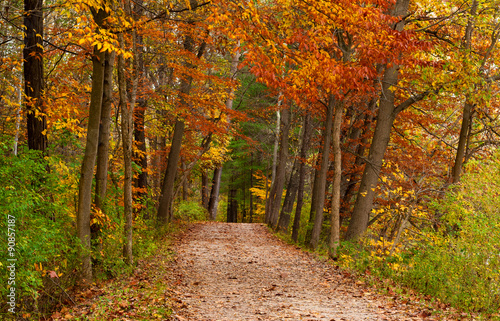 © Kenneth Sponsler, Naklejka premium Path in a Fall Woods