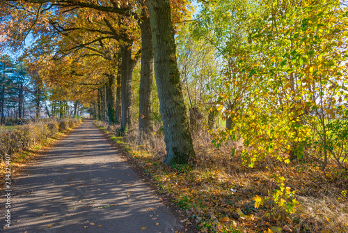 Fototapeta premium Path in a forest in fall colors in sunlight in autumn