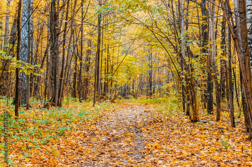 Fototapeta premium Path in a forest with colorful autumn leaves