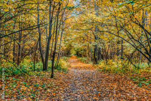 © maria_lh, Obraz premium Path in a forest with colorful autumn leaves