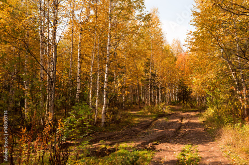 © Aleksei Lazukov, Obraz premium Path in autumn birch forest
