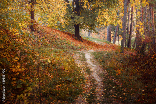 © 8H, Obraz premium Path in autumn fall park, landscape