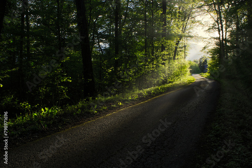 © Jonas, Obraz premium path in forest leads into bright sunlight