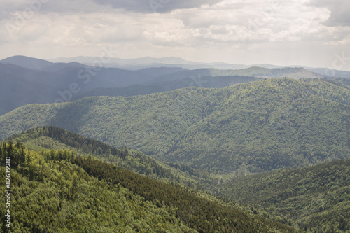 © Khrystyna Pochynok, Naklejka premium path in green summer mountains with white cloudy blue sky