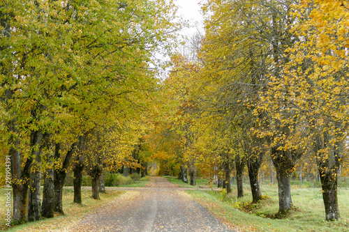 © Sindija, Fototapeta premium Path in the beautiful autumn park. Alley with trees.