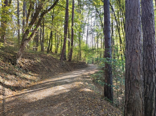 Obraz premium Path in the forest in sunlight