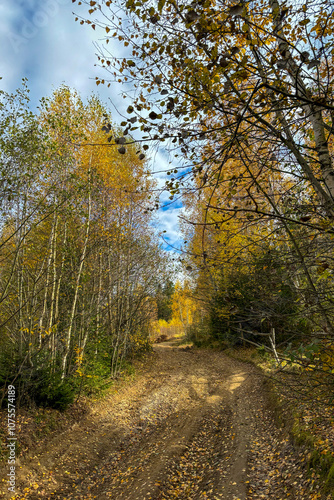 © Olga Biliak, Obraz premium Path in the forest, late autumn in Carpathians mountains, Slavske, Ukraine