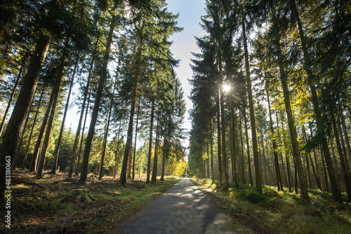 © geoki, Obraz premium path in the forest with mystical sunlight