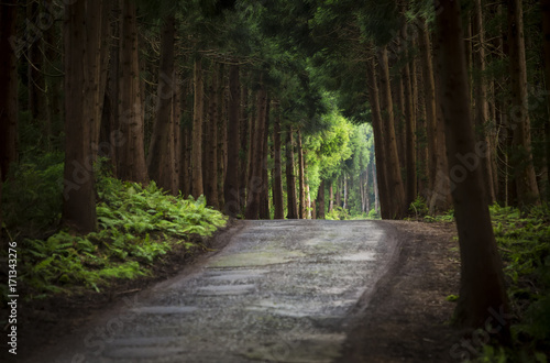 © Fulcanelli, Fototapeta premium Path in the middle of a forest. Azores Islands Portugal.