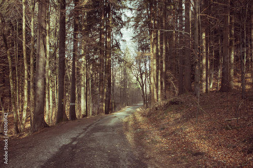 © konrad hryciuk, Naklejka premium Path in the mountain woods with no people