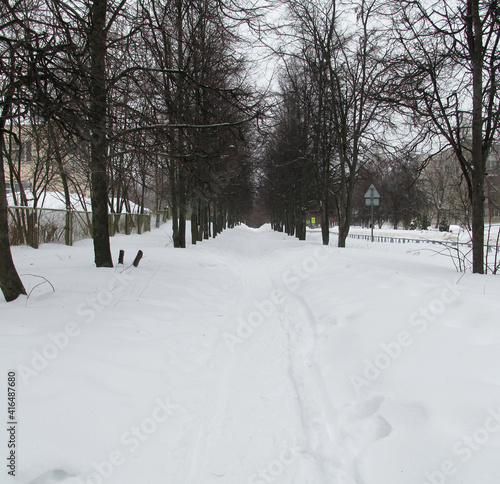 © DAndreev, Fototapeta premium path in the snow in cloudy weather