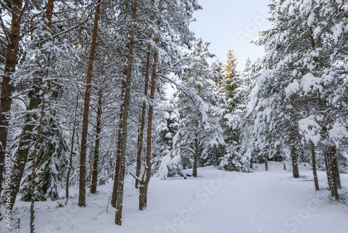 © liramaigums, Fototapeta premium Path in the snowy pine forest
