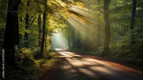 © Left, Fototapeta premium Path in the Woods with the Sun Shine through