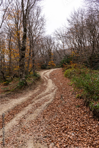 Fototapeta premium Path in wild autumnal forest