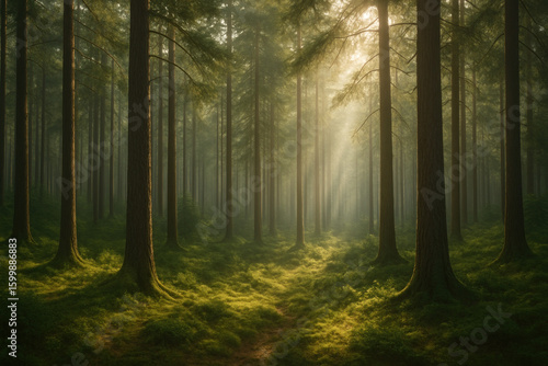 Fototapeta premium Path meandering through tranquil forest.