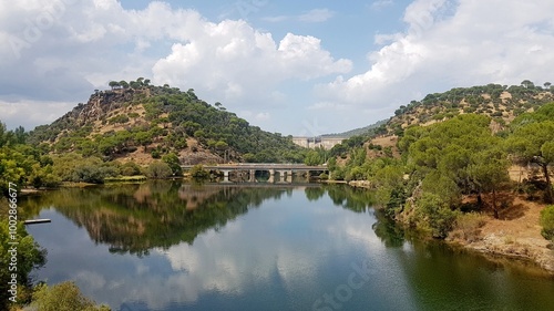 © Navacepe, Fototapeta premium path reservoir of picados san juan swamp bridge