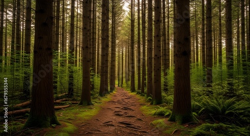 © Bery, Obraz premium Path Through a Dense Forest An Enchanting Journey into Nature's Embrace and Serenity