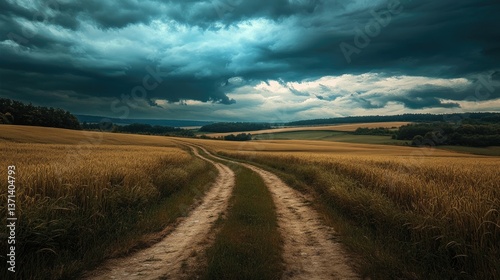 © Lilly, Naklejka premium Path through a field in HD 8K wallpaper