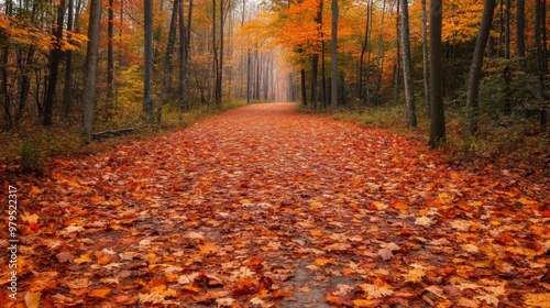 Fototapeta premium Path Through a Forest of Fallen Autumn Leaves