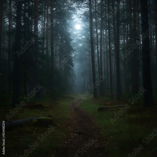 Obraz premium Path Through a Misty Forest of Tall Trees