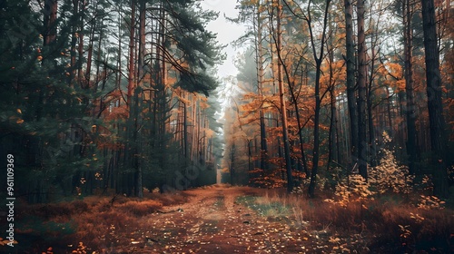 © Beer AI, Obraz premium Path Through Autumn Forest
