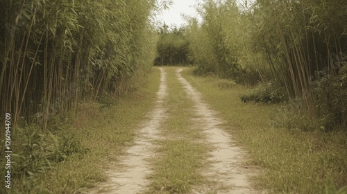 Fototapeta premium Path through bamboo forest, rural scene, quiet, nature