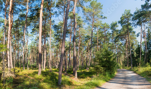 © SusaZoom, Fototapeta premium path through green pine forest with undergrowth blueberry bushes