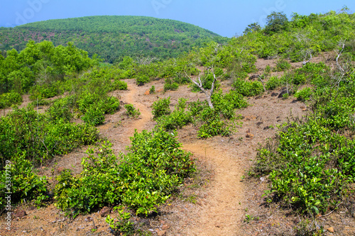 Fototapeta premium Path through the green rocky hills