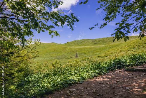 Fototapeta premium Path to Orlowicz mountain pass on Wetlina Pasture in Bieszczady Mountains,...
