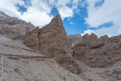 Fototapeta premium Path towards Fontananegra Pass, Dolomites, Cortina d'Ampezzo, Italy