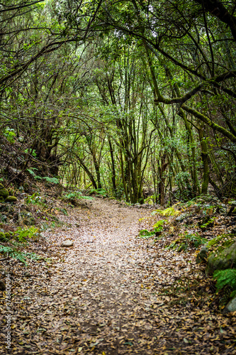 © Juan Algar, Fototapeta premium Path with leaves in the forest