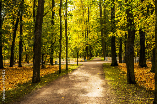© NordCry, Fototapeta premium Paths and benches in catherine park in autumn