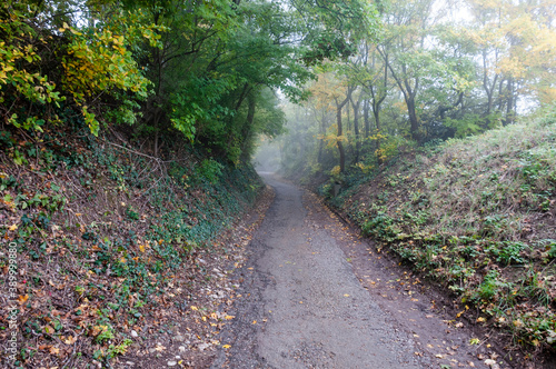 Fototapeta premium Paththrough a misty forest