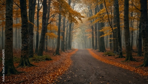 © claudunia, Obraz premium Pathway in an autumn forest.