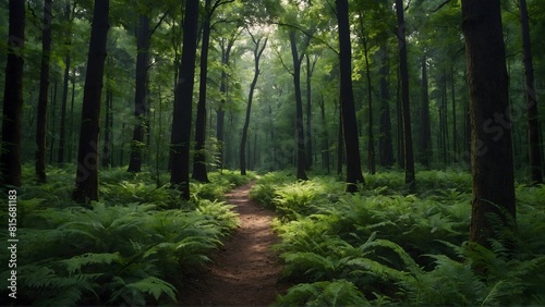 Obraz premium pathway in green wild forest background. woods background