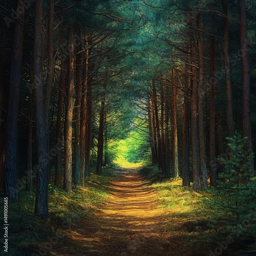 © Yiannos, Naklejka premium Pathway in the dark forest. Illustration. Computer drawing.