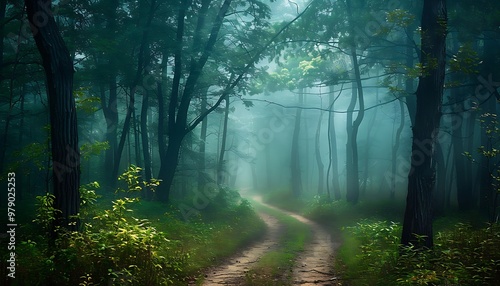 © Shipons Creative, Fototapeta premium Pathway in the forest in foggy morning.