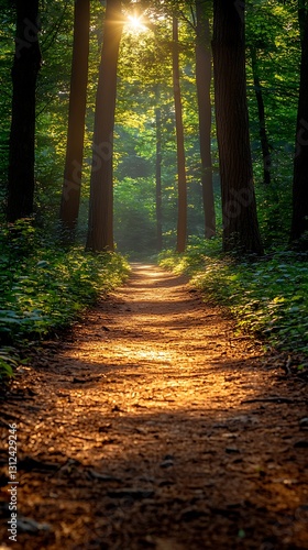 © DolonChapa, Obraz premium Pathway sunlight illuminated golden forest high resolution hd picture