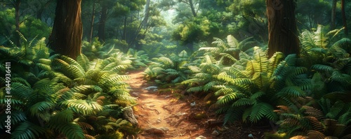 © peppastocker, Obraz premium Pathway through a forest with ferns