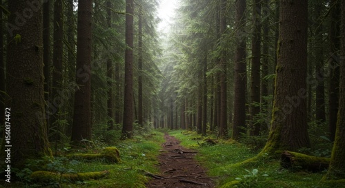 Obraz premium Pathway Through a Lush Green Forest