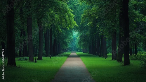 © creativeideh, Fototapeta premium Pathway Through Lush Green Trees