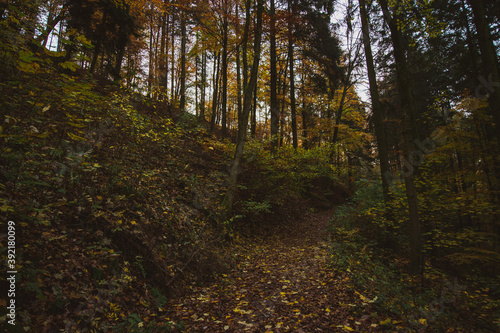 Obraz premium Pathway through the autumn forest in the South of Germany