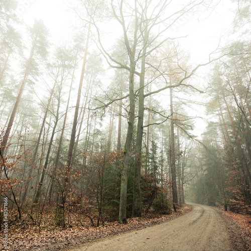 Obraz premium Pathway through the misty autumn forest