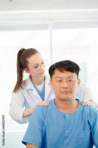 © NINENII, Fototapeta premium Patient at the physiotherapy doing physical exercises with docter therapist.