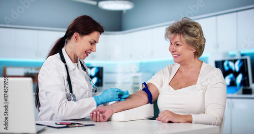 Obraz premium Patient Blood Draw By Doctor. People Donate