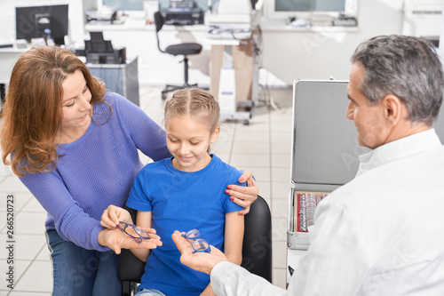 Fototapeta premium Patient choosing glasses for eyesight correction.