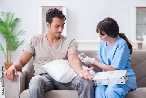 Obraz premium Patient getting blood transfusion in hospital clinic