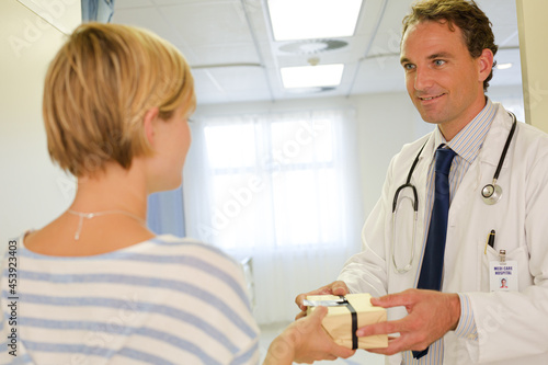 © KOTO, Obraz premium Patient giving doctor gift in hospital